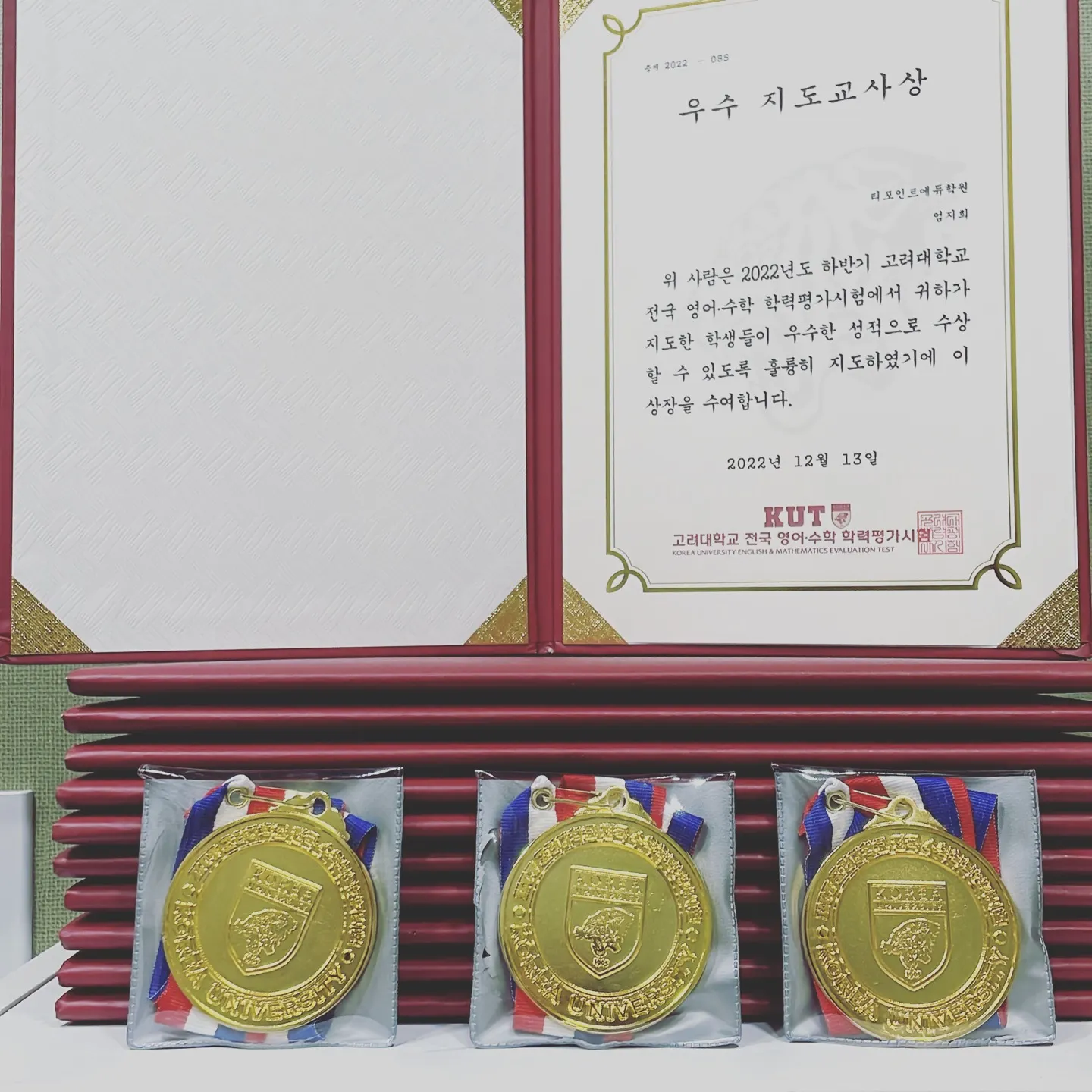 티포인트에듀에서 10명의 학생들이 고려대 수학학력평가에 참가했고, 10명의 학생들이 모두 수상을 했습니다.