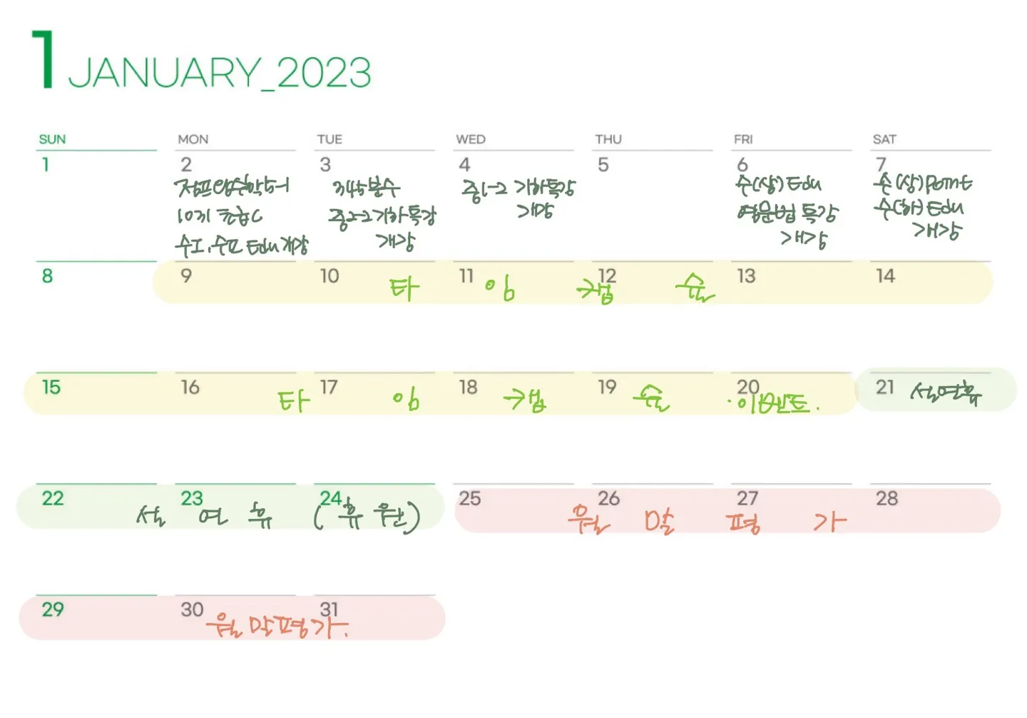 1/25 ~ 2/5 : 1월말평가 상담기간