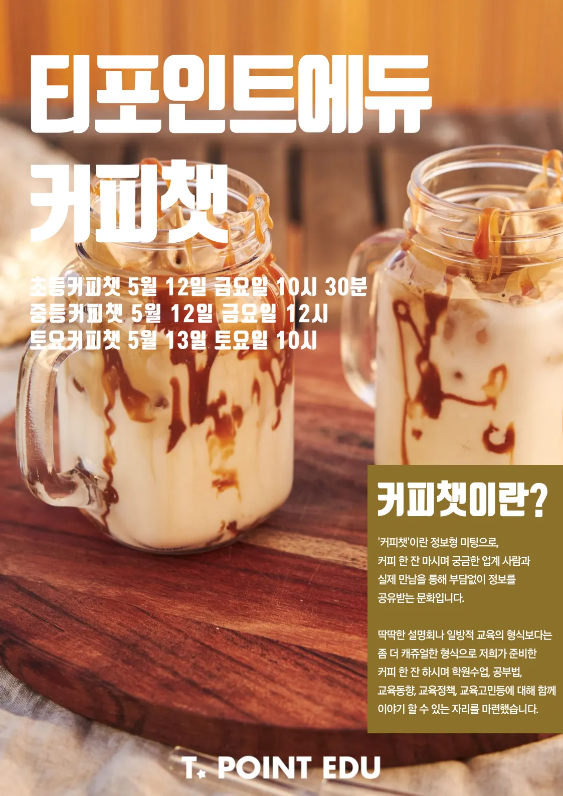 5월 12일,13일 재원생 학부모님들을 대상으로 학부모 커피챗을 진행합니다.